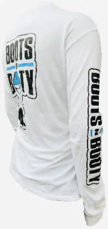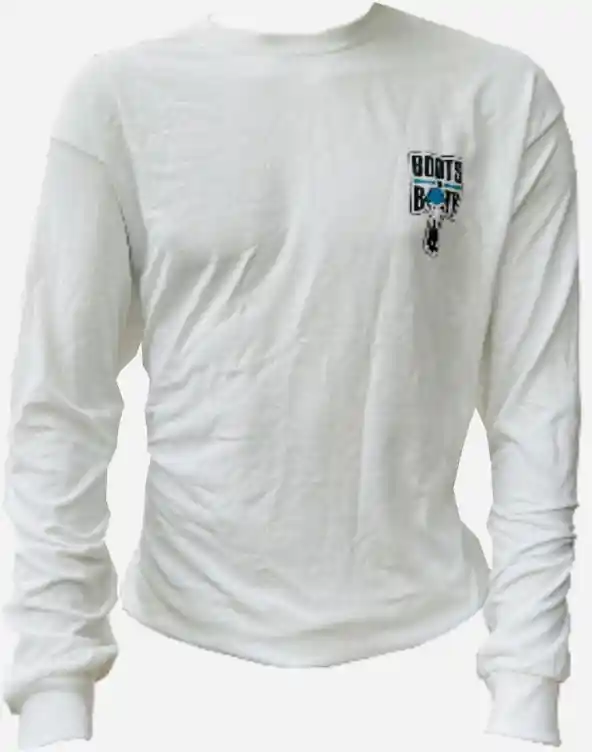 WHITE LONG SLEEVE BLACK/BLUE 100% COTTON